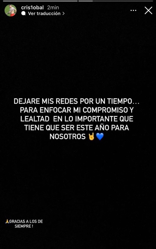 La última publicación de Camppos fue para anunciar su retiro de las RRSS (Instagram @cris1obal )