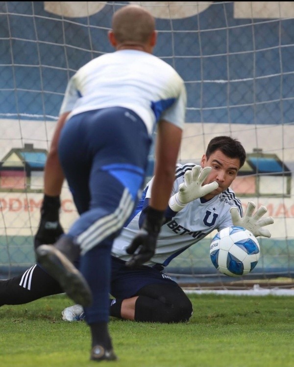 Vestido con la utilería de entrenamiento y guantes blancos, Toselli tuvo sus primeras atajadas con la camiseta de la U, esperando la lucha por el puesto para cuando comience el Campeonato Nacional.