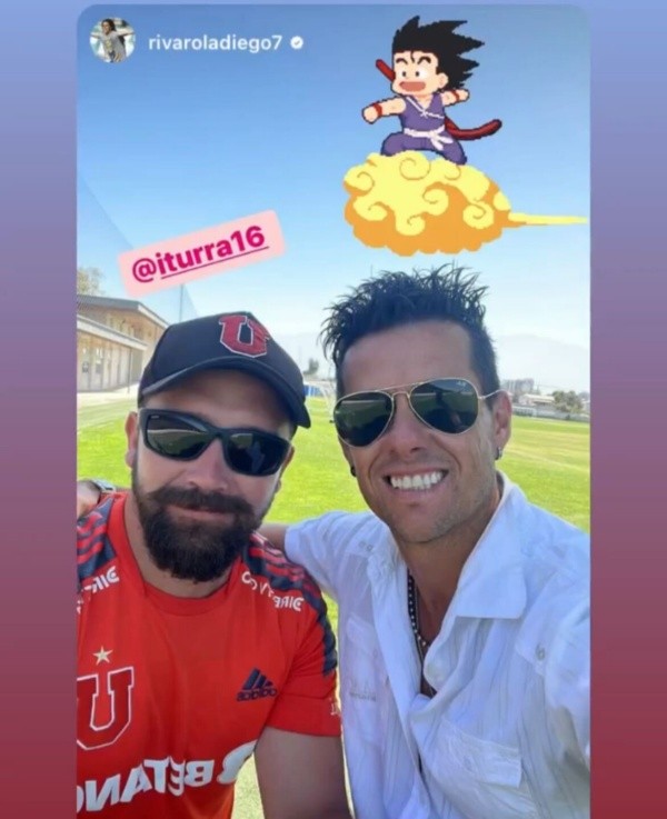 Una foto muy bullanguera compartió el ex jugador Diego Rivarola en sus redes sociales, cuando se encontró con un compañero de Universidad de Chile en su visita al Centro Deportivo Azul, en La Cisterna.