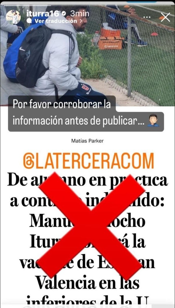 El ex volante de Universidad de Chile, Manuel Iturra, reaccionó molesto a la noticia de que sería reemplazante de Esteban Valencia en las juveniles del club, por lo que pidió aclarar la información, donde será el encargado de liderar una de las series formativas.