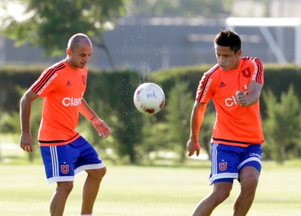 Gustavo Canales junto a Gustavo Lorenzetti en un entrenamiento de Universidad de Chile (Archivo)
