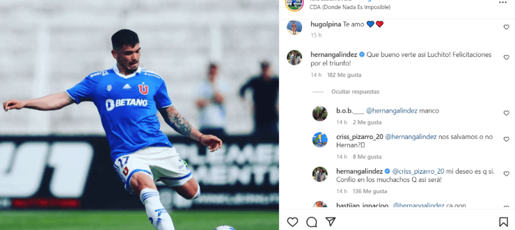 “Que bueno verte así, ‘Luchito’. ¡Felicitaciones por el triunfo!”, le escribió el arquero argentino nacionalizado ecuatorianoHernán Galíndez, quien dejó el club a mediados de temporada envuelto en una polémica y ahora pertenece a las filas del DeportivoAucas.