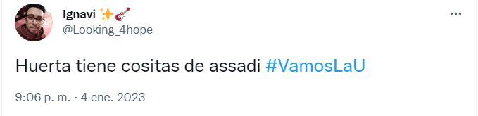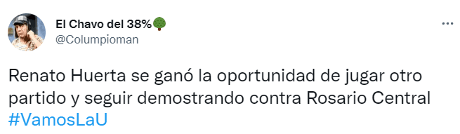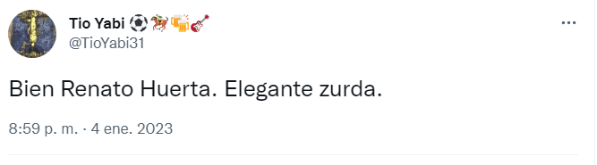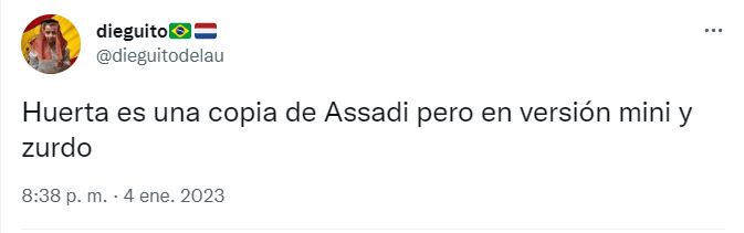 “Bien Renato Huerta. Elegante zurda”, “Me ha gustado mucho Huerta, es estilo Assadi”, “Huerta es una copia de Assadi pero en versión mini y zurdo”, “Huerta tiene cositas de Assadi”, fueron los comentarios que más se pudieronleer en la red del pajarito azul.