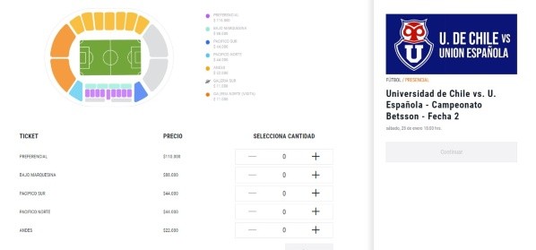 Ya no quedan galerías sur para el duelo entre la U y Unión Española (Captura Puntoticket)