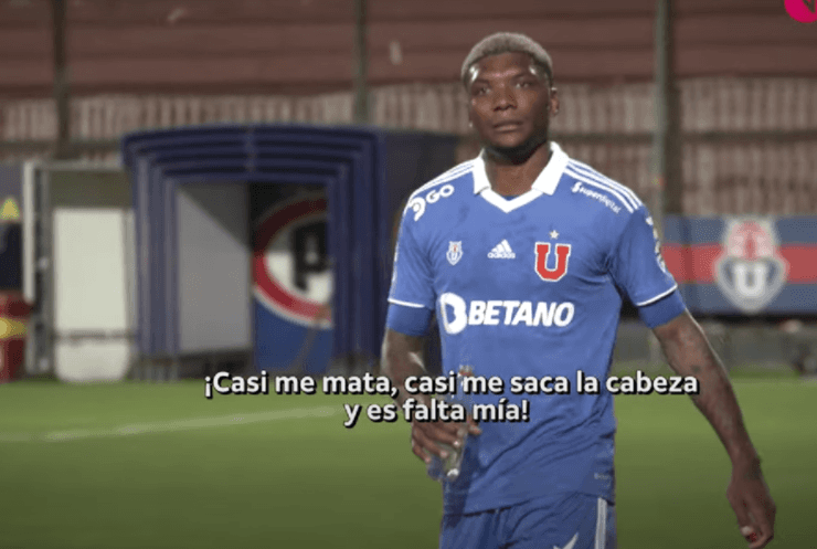 “¡Casi me mata, casi me saca la cabeza y es falta mía! ¡Mamita hueón! ¡Me estay huebi…! ¡Casi me manda al hospital y es falta mía!”, indicóel delantero de los goles importantes en el último tiempo en los azules.