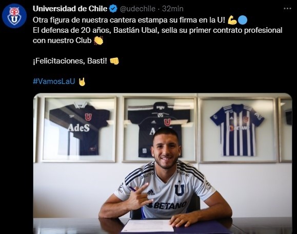 Un nuevo jugador del fútbol formativo de Universidad de Chile estampó su firma para oficializar su primer contrato como profesional de la U, durante este martes.