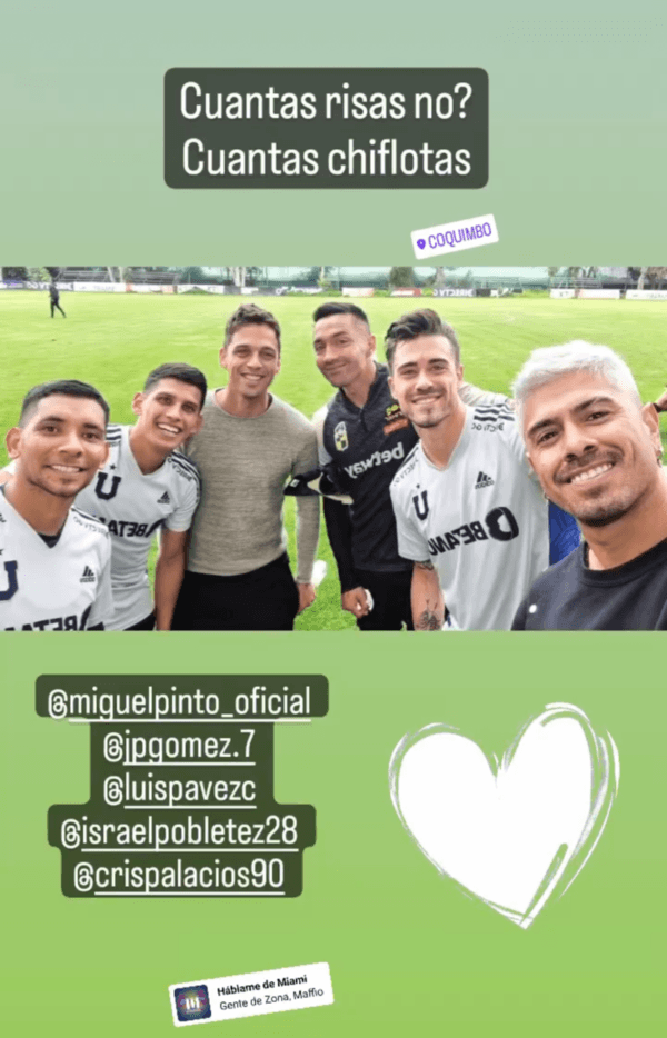 Pese a eso, la foto tuvo un tono amigable, donde también dijeron presente Cristián Palacios, Israel Poblete y Juan Pablo Gómez.
