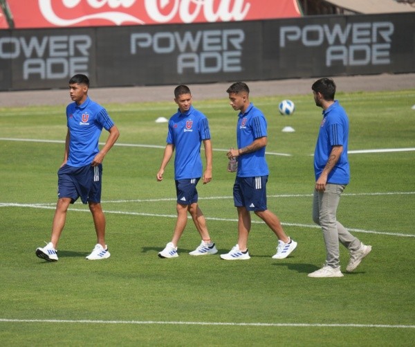 Los tres mosqueteros jóvenes de la U, que vienen juntos desde el Fútbol Formativo de los azules, aprovecharon de compartir, reirse y conversar mientras realizaron un recorrido de la cancha de La Cisterna a minutos antes de saltar a realizar el trabajo de precompetencia.