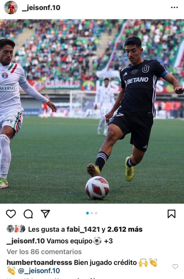 Después del triunfo, Fuentealba subió una imagen a su cuenta de Instagram, la que fue comentada por su padrino Chupete Suazo: “Bien jugado crédito”, dejando en claro lo mucho que confía en sus condiciones el goleador eterno.