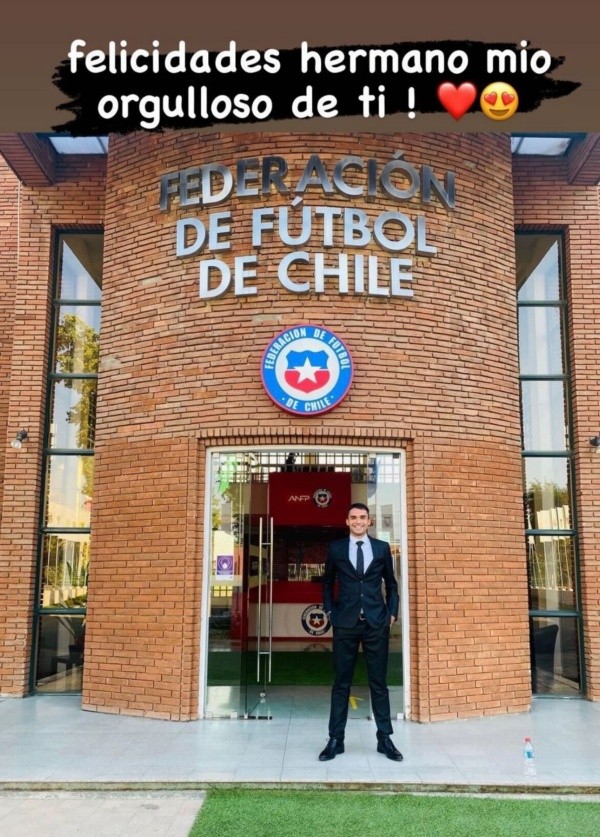 “Felicidades, hermano mío. Orgulloso de ti”, es el mensaje que escribió Assadi en sus redes sociales, con su hermano parado en la parte delantera de la ANFP, luego de obtener su ascenso.