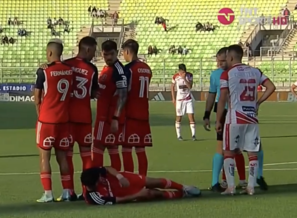 La falta fue de Matías Zaldivia, quien quedó con 4 cartulinas amarillas, y de inmediato cuatro jugadores conformaron la barrera para proteger a Cristóbal Campos. Fernández, Domínguez, Casanova y Darío Osorio fueron los elegidos.