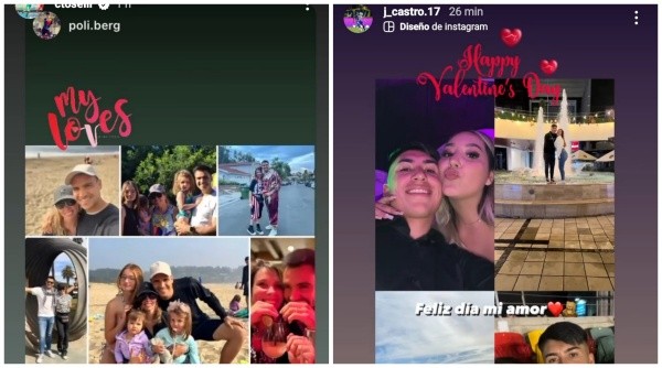 Uno de ellos fue Lucas Assadi, quien en una historia de Instagram, armó una foto con cuatro momentos junto a su polola. En una aparece besándola, en otra ambos posando a la cámara abrazados, en otra durmiendo y finalmente un arreglo de rosas con el mensaje “para la persona más hermosa del planeta” y un corazón, con la leyenda superior “Feliz día mi princesa hermosa”.