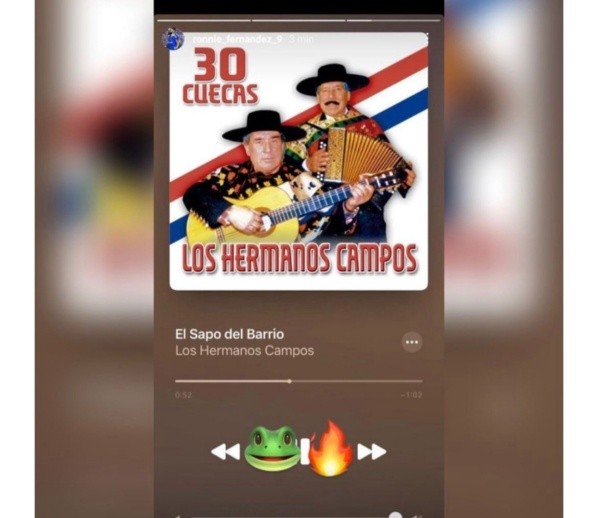 Sin embargo, llamó la atención un posteo hecho por Ronnie Fernández en su cuenta de Instagram, que al estilo Arturo Vidal dedicó una imagen con un anfibio y música de los hermanos Campos, con la canción “el sapo del barrio”.