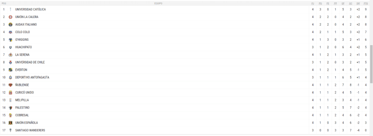Tabla de posiciones.