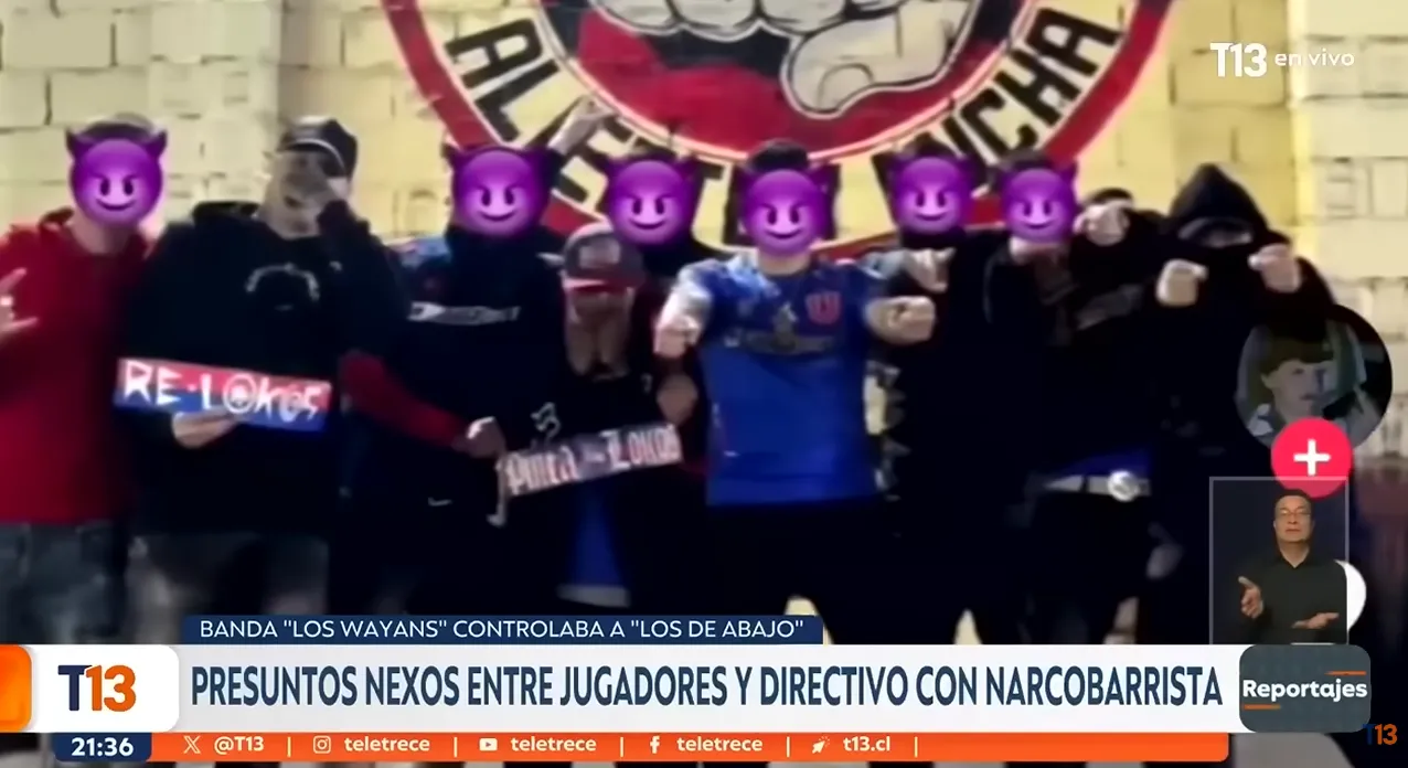 Según dio a conocer un reportaje de Teletrece, un presunto líder de la barra “Los de Abajo” habría tenido vínculos con personas cercanas al club. Se trata de Víctor Poblete Aguilera, conocido como “Vitoko”, quien fue formalizado por delitos ligados al narcotráfico, asociación criminal y tenencia de armas, siendo apuntado además como integrante de la banda “Los Wayans”.