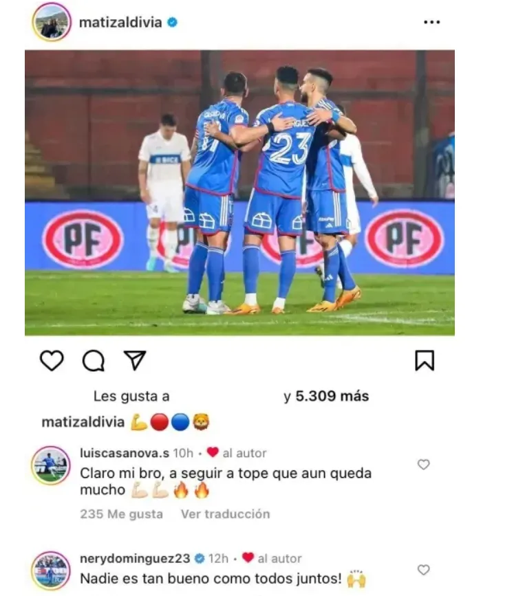 Lo cierto es que el jugador que estuvo en la última nómina de la Selección Chilena utilizó sus redes sociales para publicar una imagen de la goleada ante la UC, donde aparece junto a sus compañeros de zaga: Nery Domínguez y Luis Casanova.