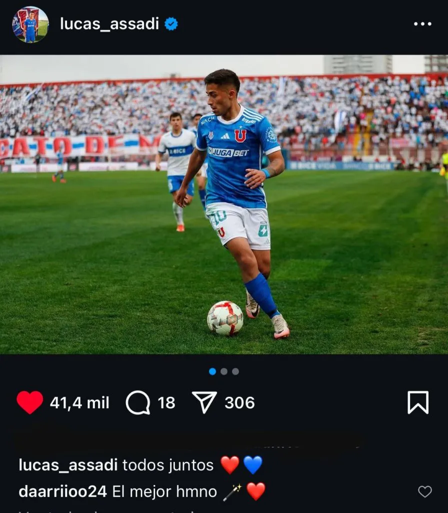 Tras lo que fue su gran actuación, Assadi publicó fotografías del triunfo de la Universidad de Chile ante la UC, en la que un viejo conocido se hizo notar dentro de su cuenta de Instagram.