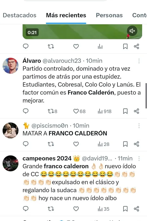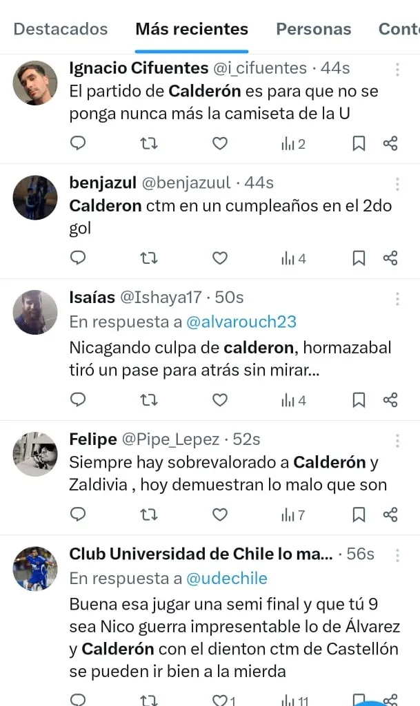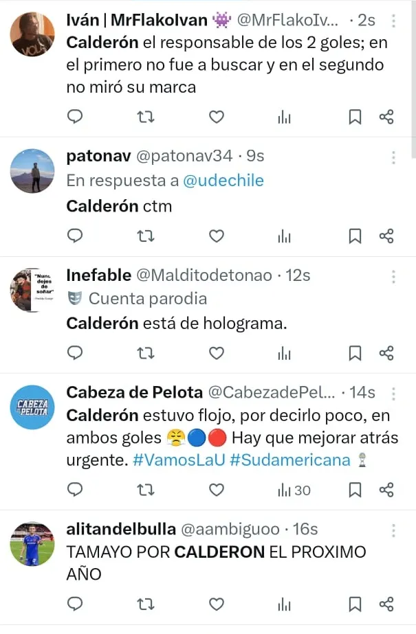 “Es para que no se ponga nunca más la camiseta de la U”, “debe irse a fin de año”, “fue el responsable de los dos goles” o “está de holograma”, fueron solo algunos de los comentarios contra Franco Calderón.