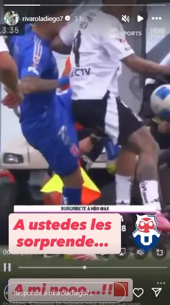 ¿Cómo lo hizo? En Instagram, publicó una historia del momento exacto del evidente golpe contra el defensor de Universidad de Chile y comentó: “A ustedes les sorprende, a mí no“.