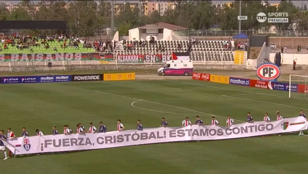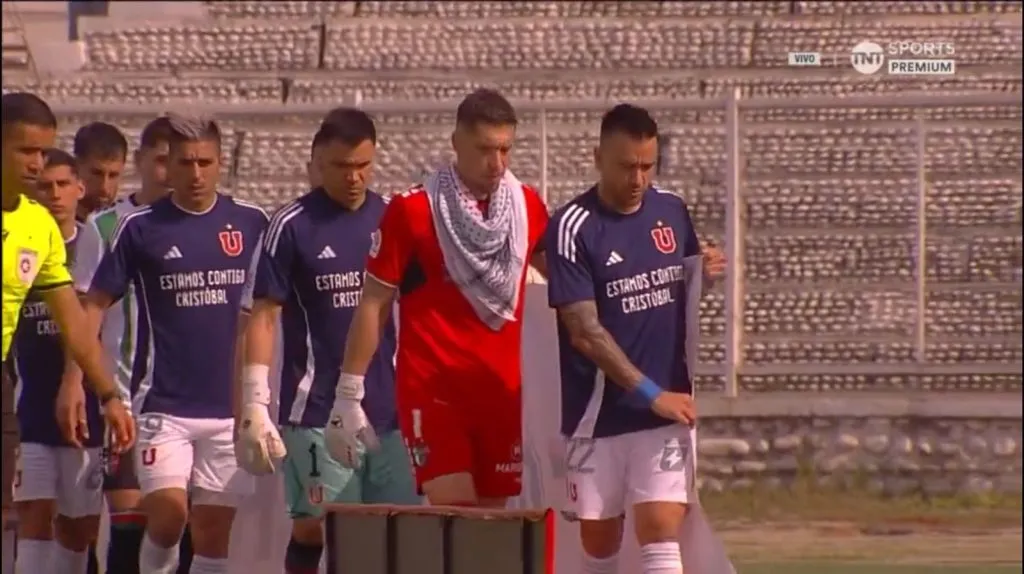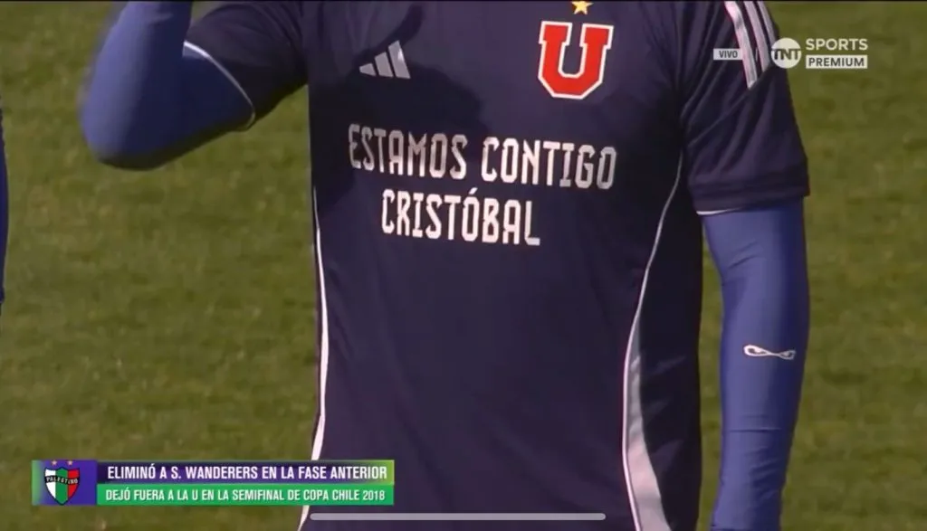 Además, los jugadores de la Universidad de Chile aparecieron con una camiseta en la que en su parte delantera aparecía el escrito ‘estamos contigo Cristóbal’ y en su parte trasera todos tenían el dorsal número 1 con el apellido del golero.