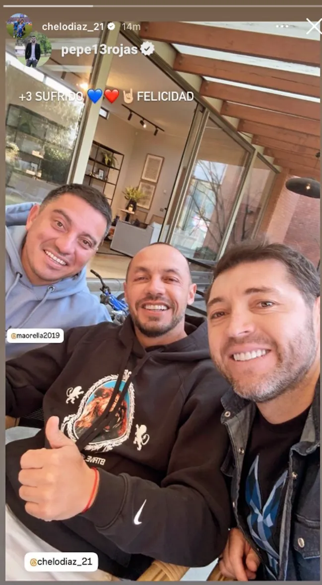 “+3 Sufrido. Felicidad”, escribió Rojas, imagen que fue replicada por el actual volante de la U en su red social.