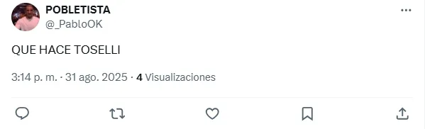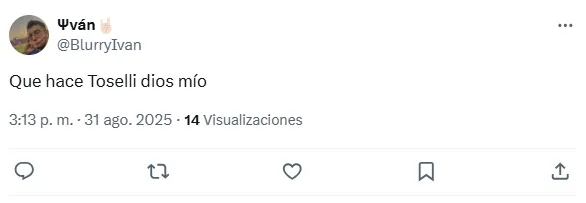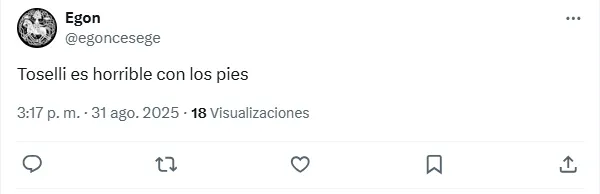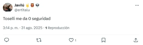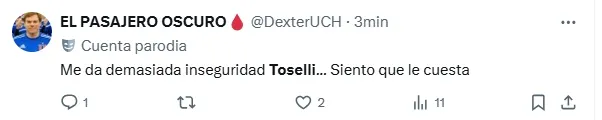 “Toselli es horrible con los pies“, “Toselli me da 0 seguridad” y “Toselli está nervioso jugando” fueron parte de los comentarios lanzados mediante la plataforma X (antiguo Twitter).