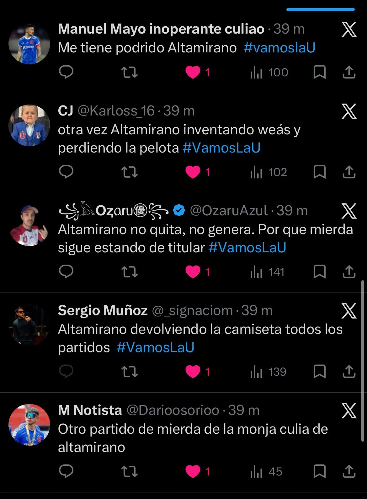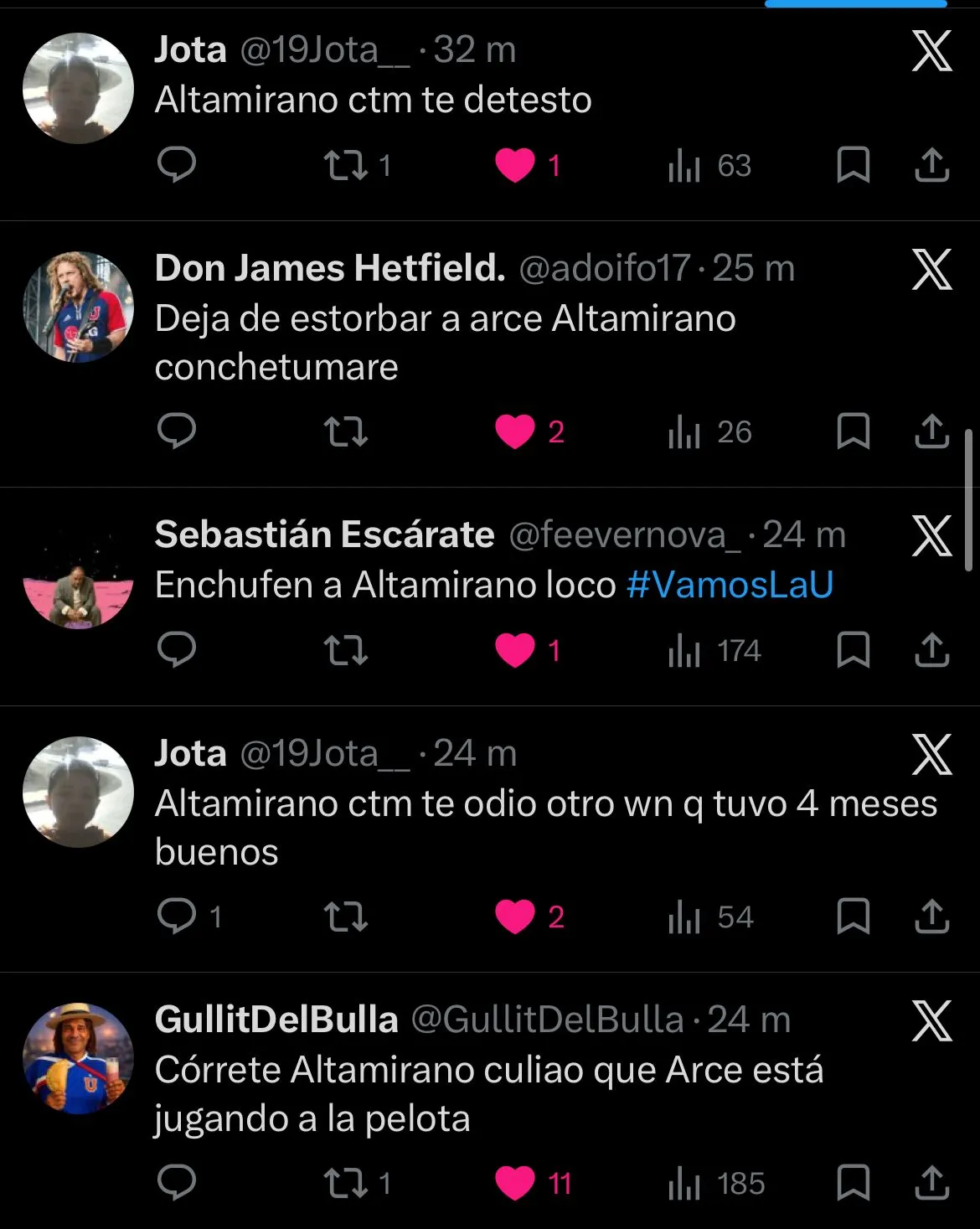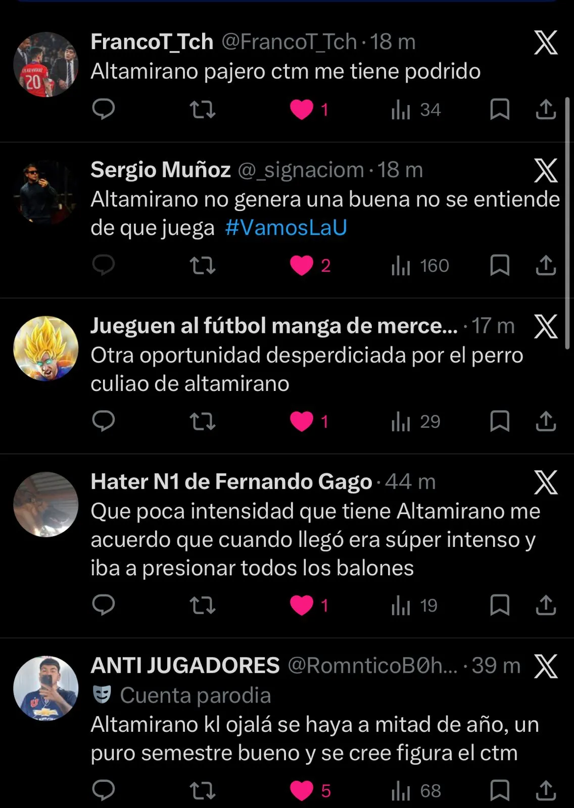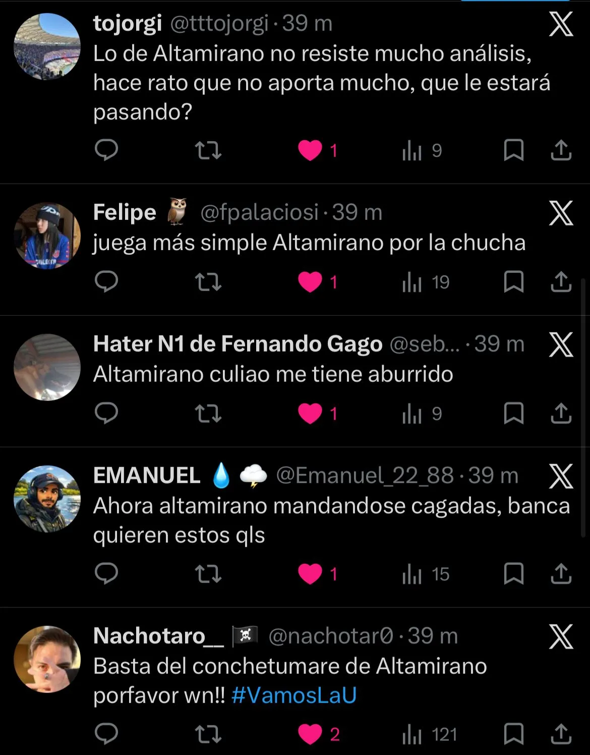 ”Lo de Altamirano no resiste mucho análisis, hace rato que no aporta mucho, que le estará pasando” señaló otro fanático