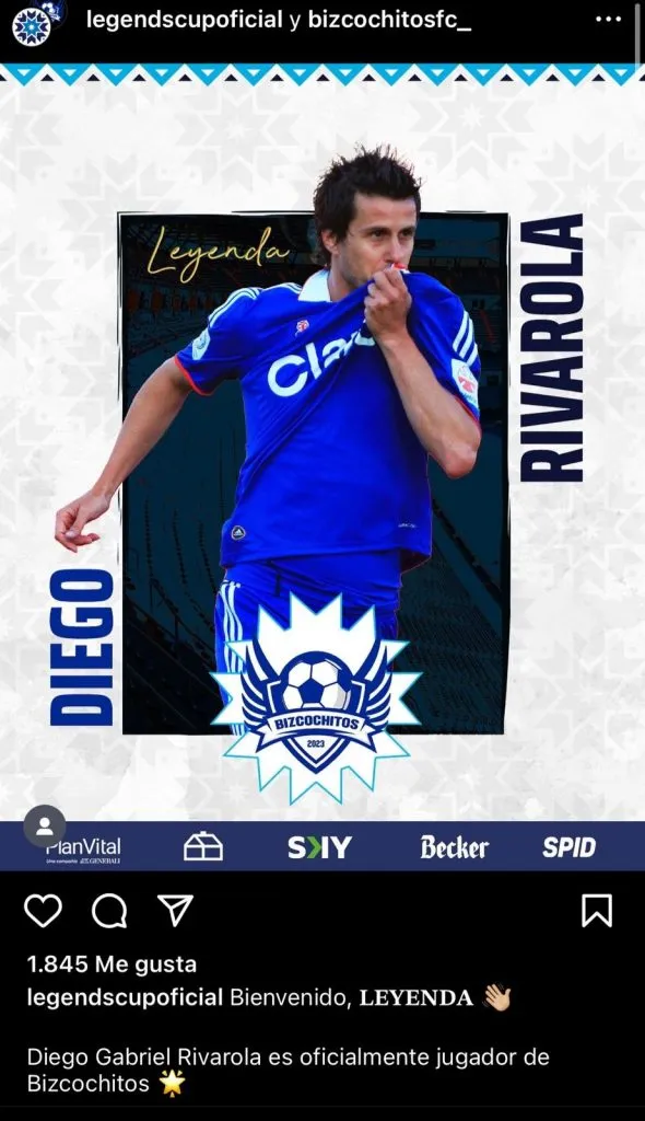 Diego Rivarola fue anunciado como nuevo jugador del ‘Bizcochitos FC‘, club que comanda el reconocido tiktoker Benjamín Arismendi, la que pertenece a la liga nacional de leyendas conocida como ‘Legends Cup’.