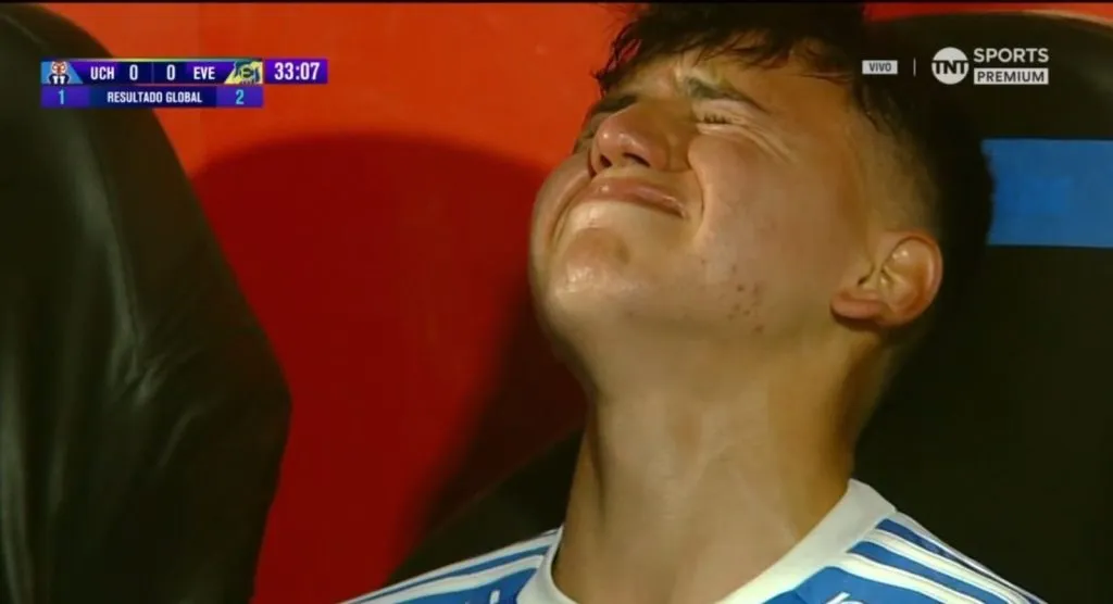 Tras salir de la cancha, las cámaras de TNT Sports enfocaron al joven atacante azul, quien salió entre lágrimas y con mucha pena tras quedar fuera de este partido, la que veía como una importante oportunidad para seguir vislumbrando como una gran variante para el plantel de la U en este segundo semestre.
