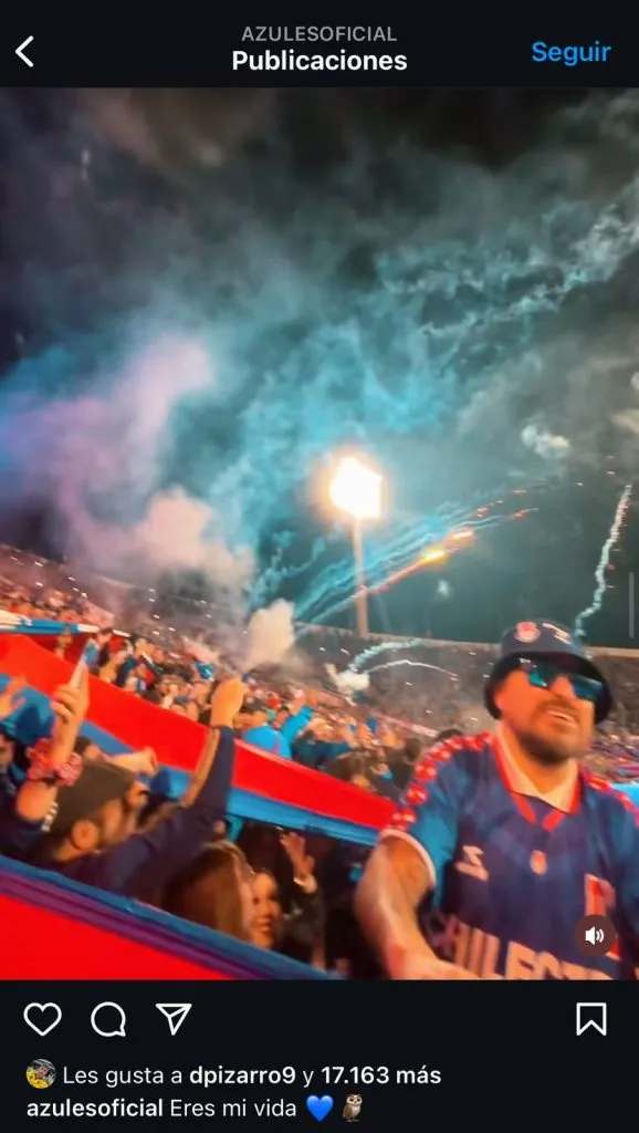 ¿La publicación en cuestión? el ex jugador del ‘Cacique’ le dio me gusta a un video de la hinchada de la Universidad de Chile en un duelo ante la Unión Española el cuál fue subido por la cuenta ‘azulesoficial’.
