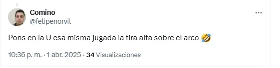 “Pons la está haciendo. Lo que no hizo en la U, lo está realizando en Bucaramanga” y “Pons en la U nunca te hacía ese gol, cómo pesa la polera del club más grande de Chile“, destacaron entre los comentarios en X.