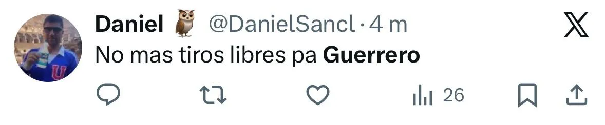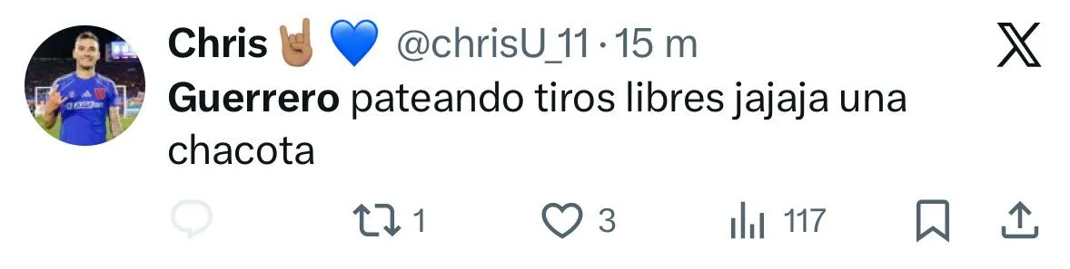 - Los hinchas de la U se manifestaron en redes sociales (X/Twitter), criticando los tiros libres de Guerrero.