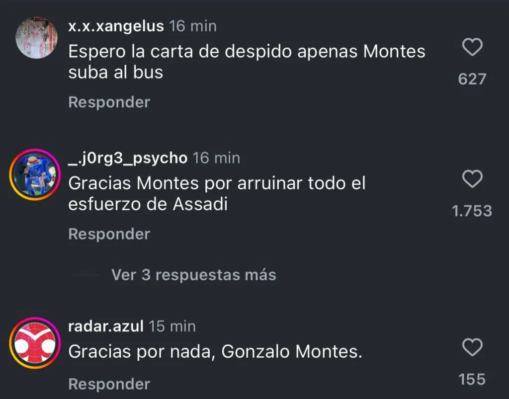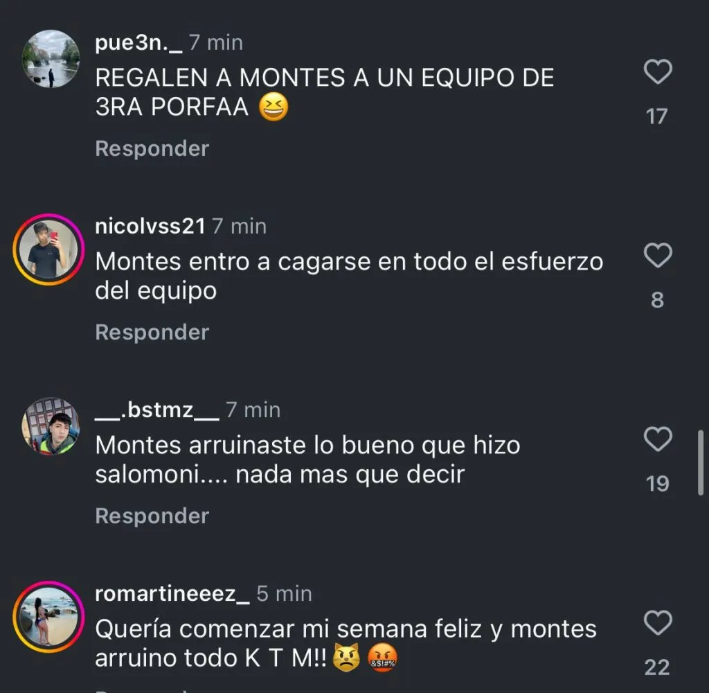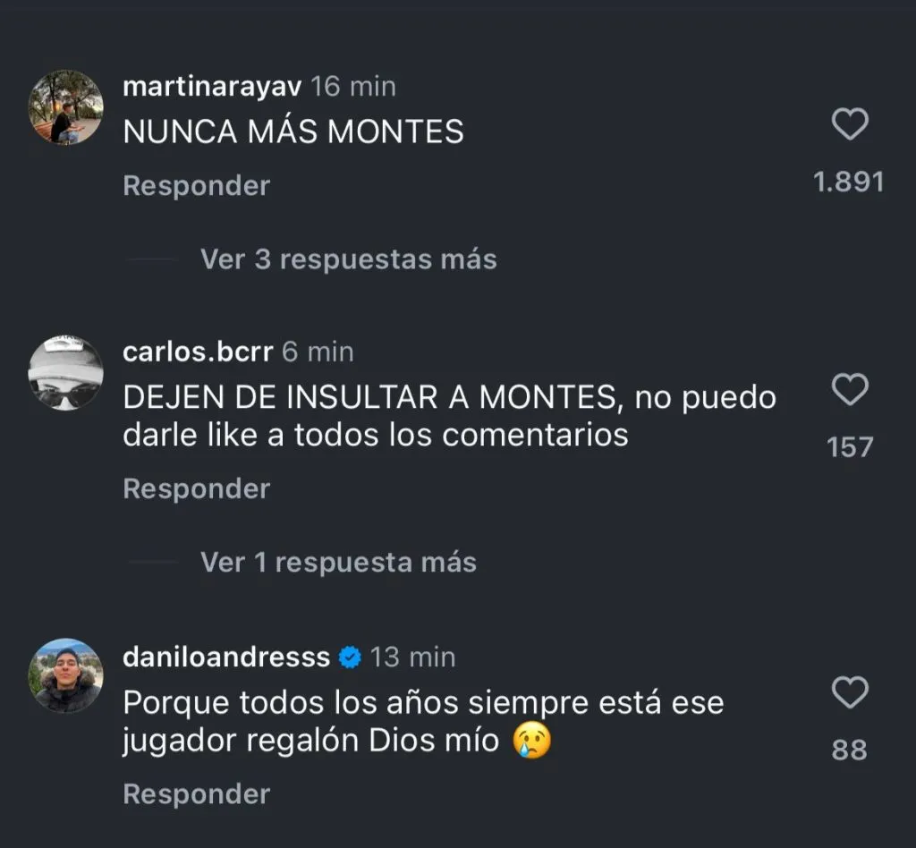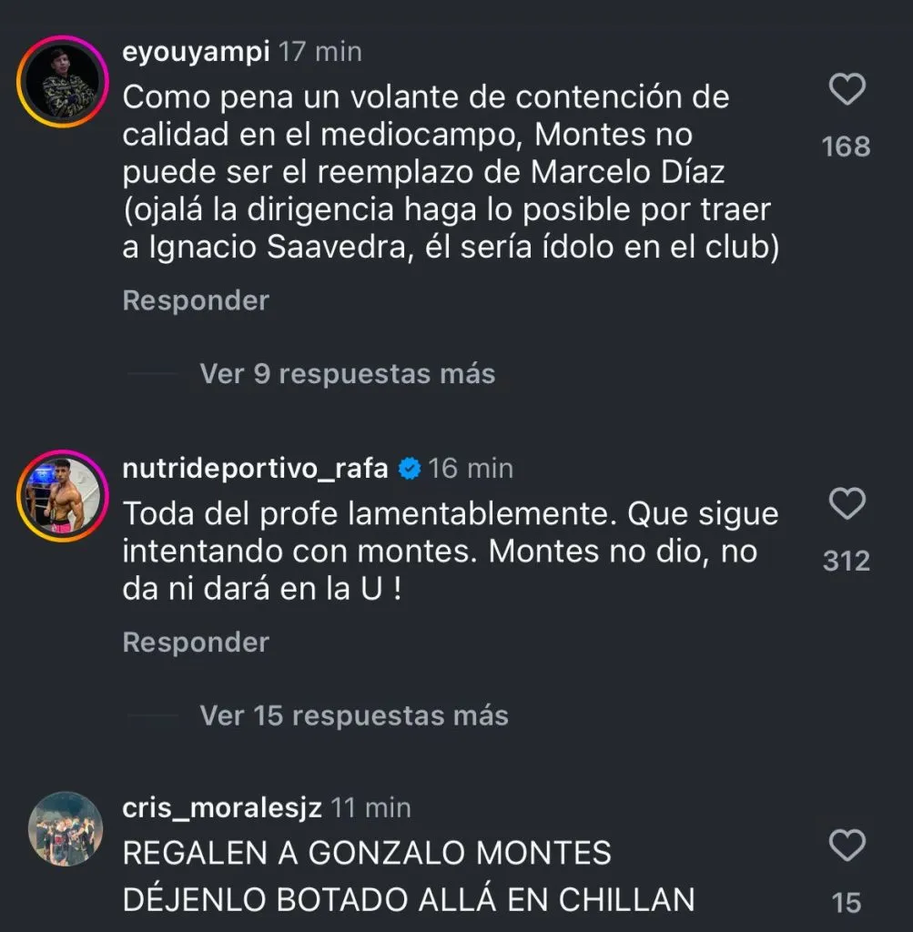 “Toda del profe lamentablemente, que sigue intentando con Montes. Montes no dio, no da y ni dará por la U”, enfatizó otro fanático.