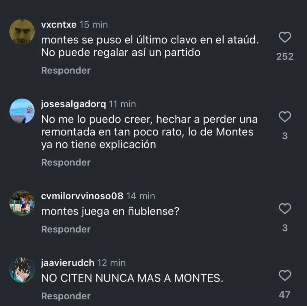 “Montes se puso el último clavo en el ataúd. No puede regalar así un partido”, indicó furioso uno de los hinchas de la U.