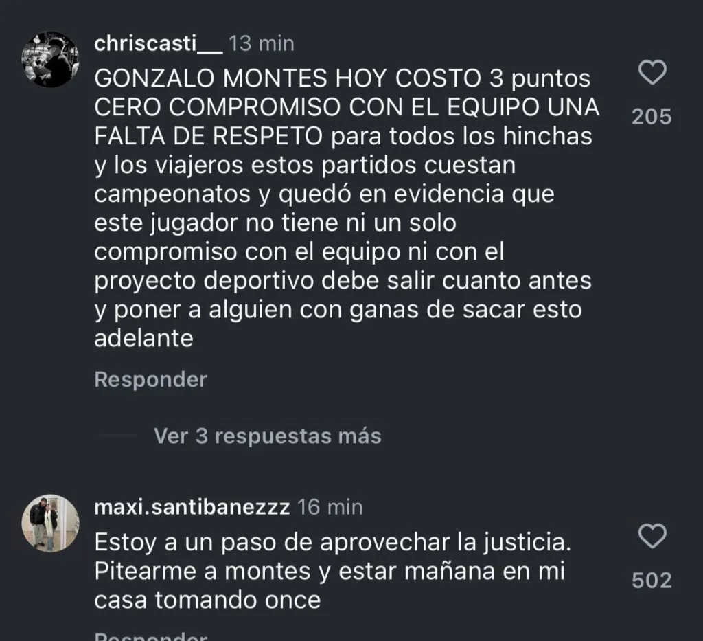 Tras finalizar el duelo, los hinchas del ‘Romántico Viajero’ demotraron todo su descontento contra el volante, Gonzalo Montes, quien cometió un grosero error en el gol que terminó significando la igualdad para Ñublense.