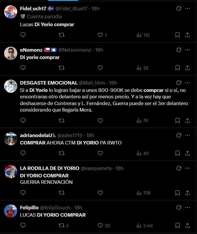 Los comentarios de los hinchas de la U por Lucas Di Yorio: