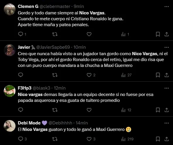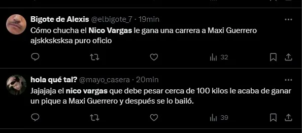 Y en el epílogo de la mitad de inicio, se produjo la jugada donde muchos hinchas reaccionaron en redes sociales, específicamente en X, quienes comentaron la acción protagonizada por Maximiliano Guerrero y el central nortino, Nicolás Vargas.