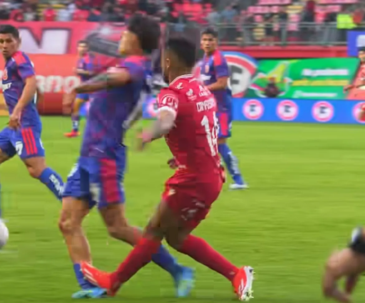 En el duelo disputado en Chillán, la polémica se instaló en el primer tiempo, luego que el mencionado lateral izquierdo de Ñublense impactó fuertemente el tobillo del volante de la U en un rechazo de balón. Para muchos, la jugada debió haber sido sancionada con tarjeta roja, sin embargo ni el juez Cristián Galaz ni el VAR cobraron una sanción.