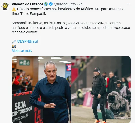 El ex DT de ‘La Roja’ y la U es un serio candidato para adueñarse del banco del club ‘Galo’, en la que incluso desde el mismo medio citado indicaron que el ‘Casildense’ dijo presente en el último duelo del Atlético Mineiro ante Cruzeiro y se mostró dispuesto de volver al club sin pedir refuerzos.