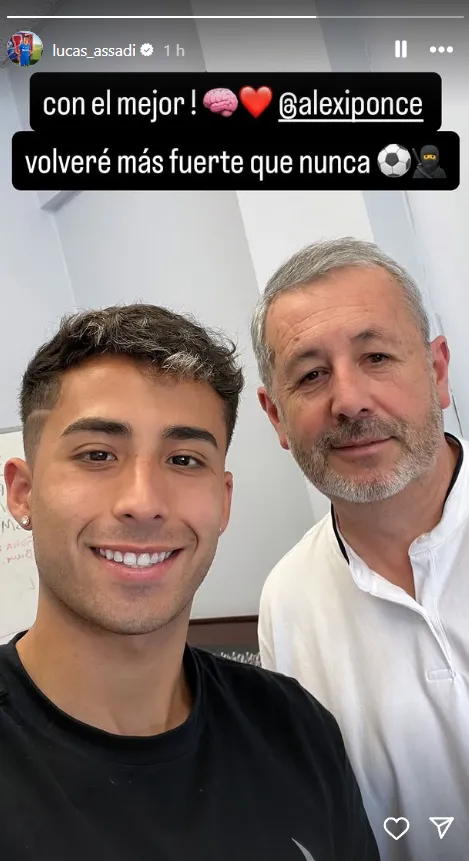 “Con el mejor… volveré más fuerte que nunca”, publicó Assadi en una historia en Instagram junto al profesional con quien ya comenzó su terapia para volver tras la lesión y un posible castigo.