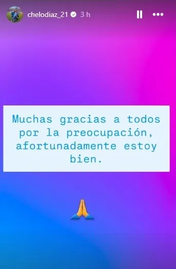 El futbolista reapareció en horas de esta tarde a través de una historia en Instagram, llevando tranquilidad a todos quienes se preocuparon por el estado de salud del 21 estudiantil.