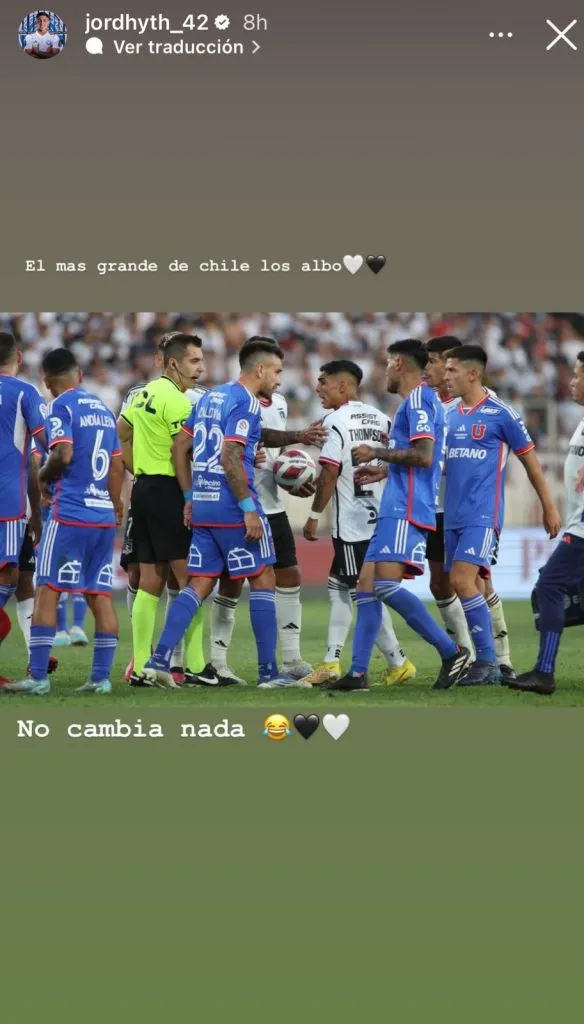 Tras lo que fue este posteo del ex Colo Colo, el defensor de la U en lo que ha sido su primer y único post en sus historias, compartió una foto que sale celebrando junto a sus compañeros en el camarín.