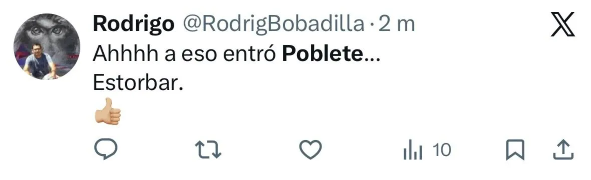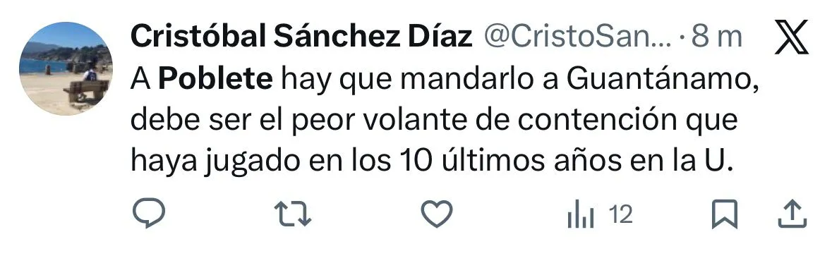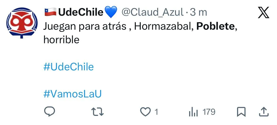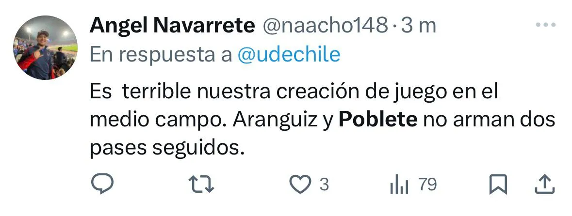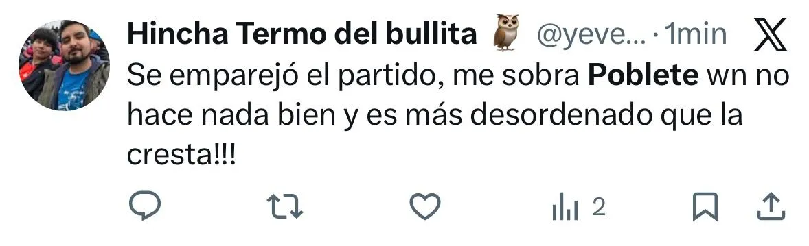 “Poblete sobra en el equipo, que entre Altamirano”; “Me sobra Poblete, no hace nada bien y es más desordenado que la cresta”; “Aránguiz y Poblete no arman dos pases seguidos”, fueron parte de los comentarios.