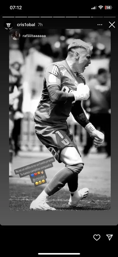 Aprovechando la resonancia en las redes sociales, Cristóbal Campos Véliz usó su cuenta en Instagram para publicar una serie de imágenes de su paso histórico por el club, desde la infancia hasta estos días en que defendió la portería estudiantil.