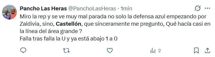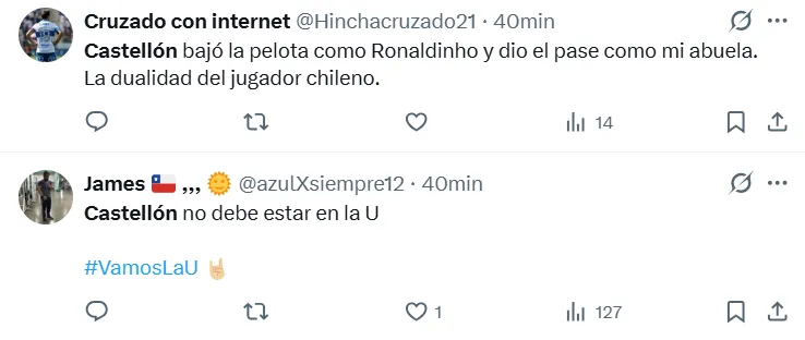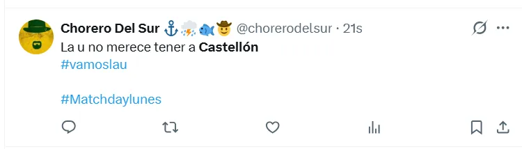 Es por ello que en RR.SS. hubo comentarios como: “puse el partido, cagazo de Castellón. 10 segundos me fueron suficientes para no ver esa mierda“, o también unos más drásticos asegurando que: “no debe estar en la U”.
