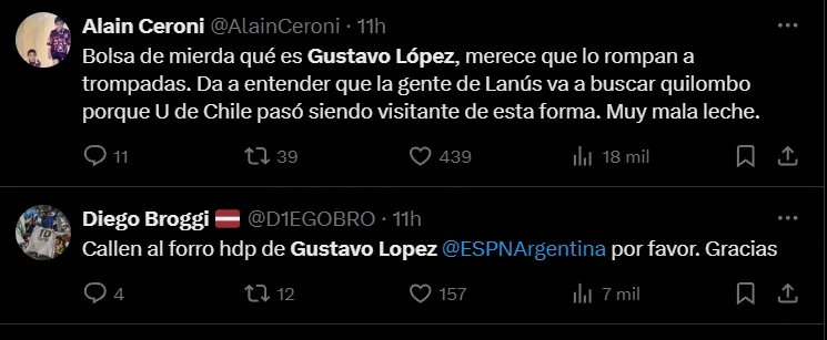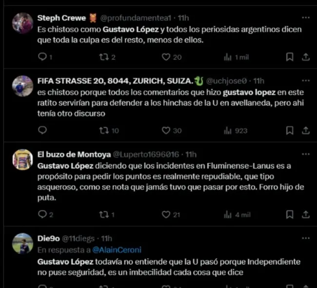 Estas declaraciones provocaron la reacción inmediata de los hinchas de la U y de algunos argentinos, quienes inundaron redes sociales con críticas hacia López.