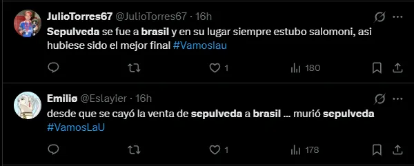 Bajo ese contexto, la disconformidad de los hinchas se hizo eco inmediatamente en las redes sociales, donde el nombre de Sepúlveda se convirtió en tendencia y abrió el debate sobre su rendimiento y proyección.