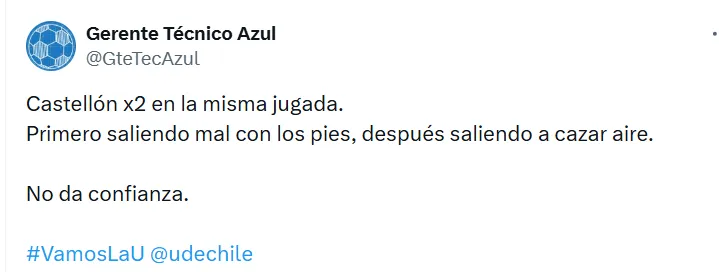 Pero quien condicionó sin dudas el resultado para los Azules en la primera parte fue Gabriel Castellón, golero que tuvo una muy mala salida en el gol de Mundaca cuando la primera parte del encuentro ya estaba por expirar.