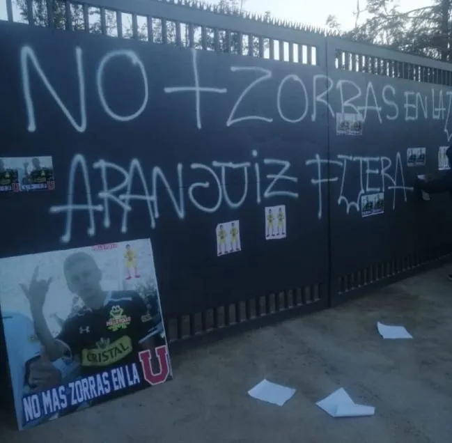 Uno de los últimos fue contra Matías Zaldivia, cuando el futbolista iba a llegar a la U proveniente desde Colo Colo y los seguidores azules estaban bastante molestos con la situación rayaron la puerta de ingreso del lugar.