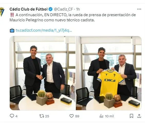 El ex entrenador de la Universidad de Chile, Mauricio Pellegrino olvidó lo que fue su mezquino paso por el conjunto ‘Laico’ y para esta temporada 2024 encontró un nuevo desafío para su carrera, en la que será el nuevo DT del Cádiz de España.